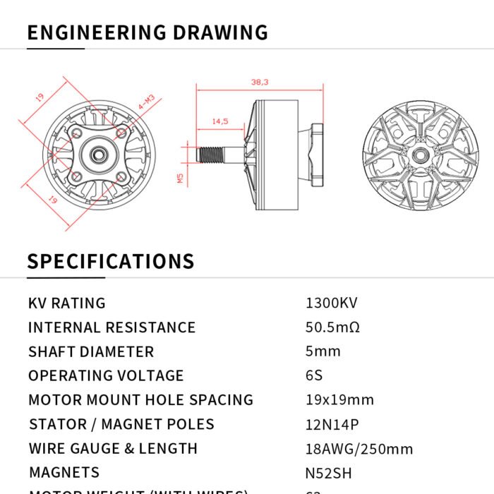 | Motor Weight (with wires) | 63g |